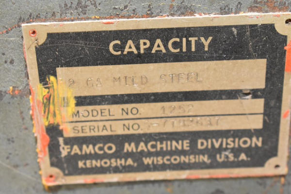 Famco electric shear, 12 gauge mild steel, Model 1252, 52" capacity