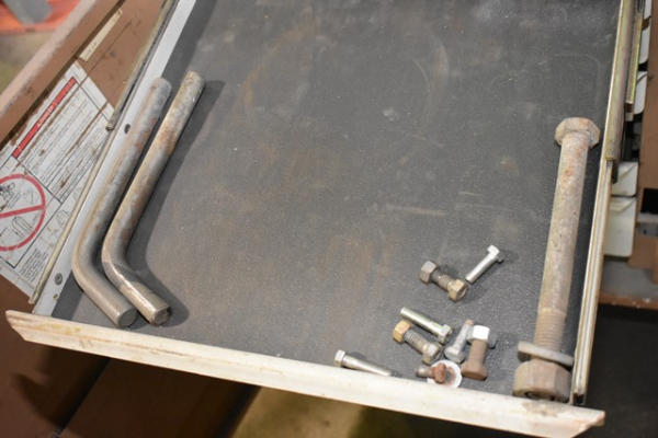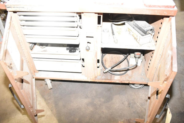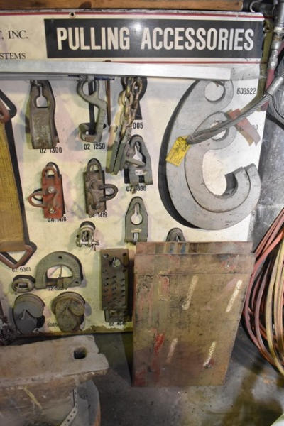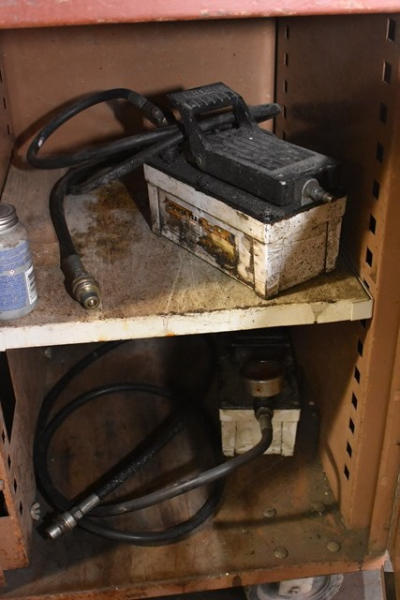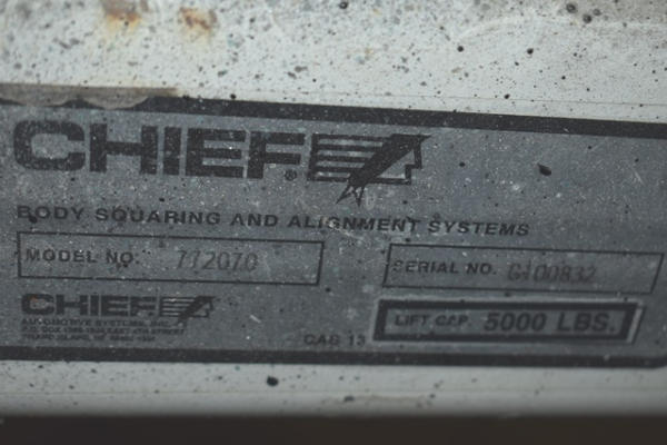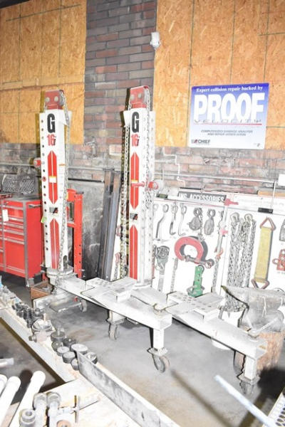 Chief frame machine with pulling towers and accessories. Also includes roll around cabinet with additional accessories, frame rail holders, etc. (DOES NOT INCLUDE ANY TOOLS SEEN ON THE ACTUAL FRAME MACHINE. IT IS JUST THE MACHINE ITSELF)