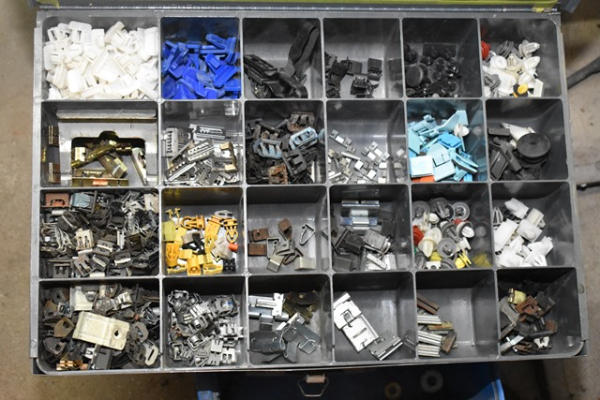 Large lot of automotive clips, plugs, cables
