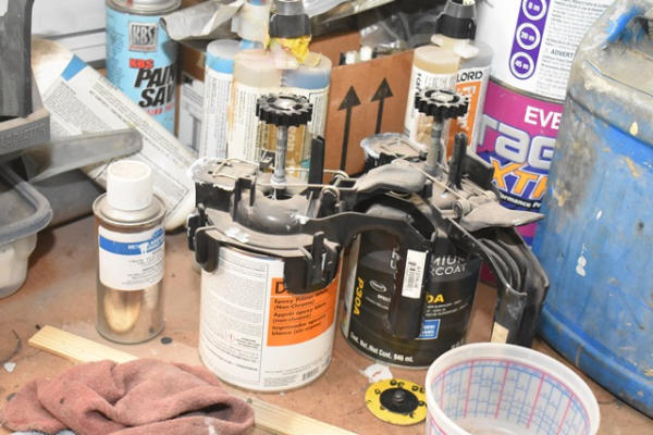 Rest of contents on top of bench consisting of spreaders, flashlight, fuser, etc.