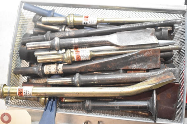 Box lot of assorted pneumatic chisel bits