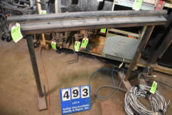 Roll around steel table with flip up vise, approx. 5' long
