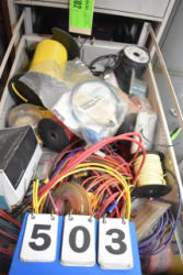 Cabinet with contents consisting of fittings, clips, nuts, bolts, wire loom holder, etc.