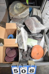 Drawer contents consisting of sanding discs, grinding discs, etc.
