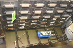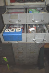 Drawer contents consisting of brake fitting assortment, grease fitting assortment, caps, etc.