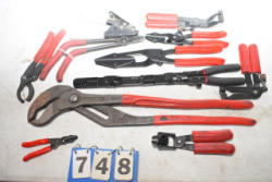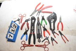 Box lot of assorted specialty pliers including Mac, Blue Point