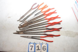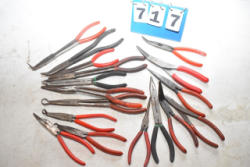 Box lot of specialty needle nose pliers, Snap-On, Timplex, etc.