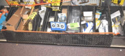 Closet contents consisting of window screen, glass shelves, misc. hardware