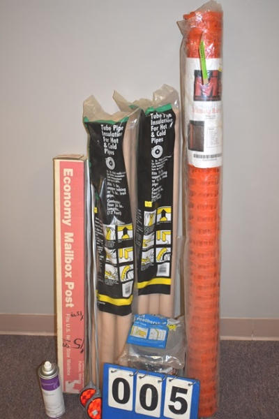Lot of warning barrier, tube pipe insulation and mailbox post