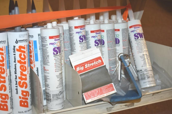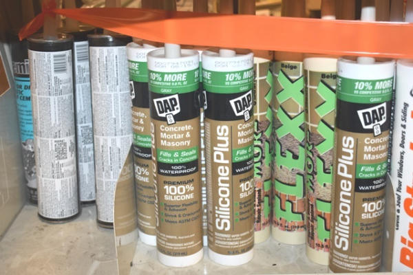 Shelf lot of silicon and caulk