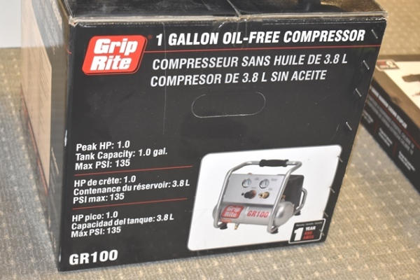 Grip Rite 1 gallon oil free compressor, 1 HP