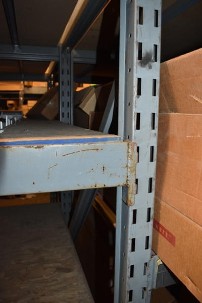 Pallet racking, 4 uprights, assorted cross beams, uprights are approx. 6' 6" (CANNOT BE REMOVED UNTIL THE LAST DAY OF REMOVAL)