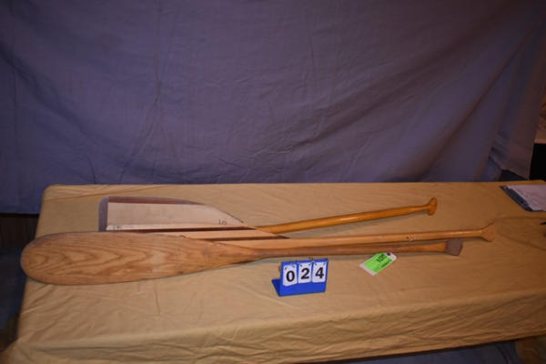 3 assorted wooden boat oars