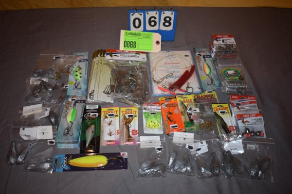 (12) assorted weights, stringer, (7) hooks, (4) sinkers, (7) split shot, (6) jigs, (6) swivels, (14) assorted lures