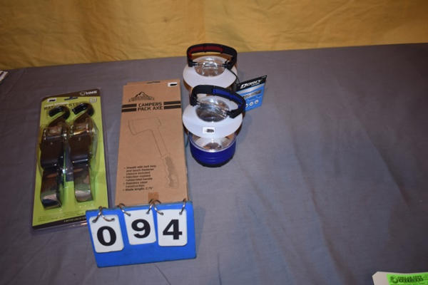 2pk ratchets, (2) battery lanterns, axe