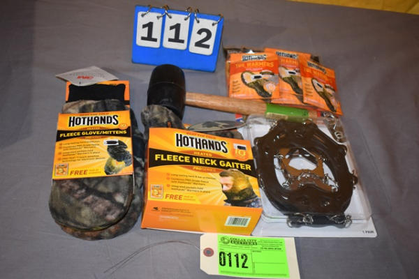 hothands gaiter/mittens, ice cleats, mallet, (9) assorted hot hand pkgs
