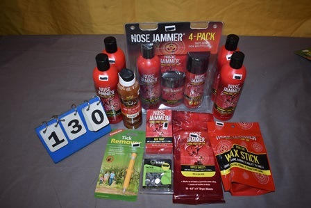nose jammers 4pk, (2) conditioner, (2) shampoo, bar soap, tick remover, trail tacks, dryer sheets, wax stick, tinks