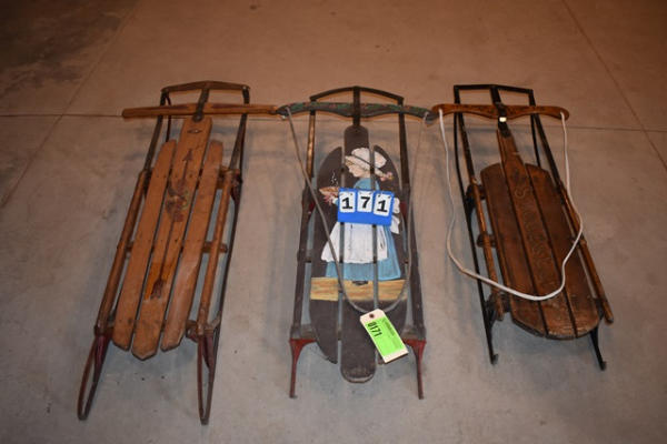 Vintage runner sleds: (1) speedster, (1)flexible flyer, (1) runner sled