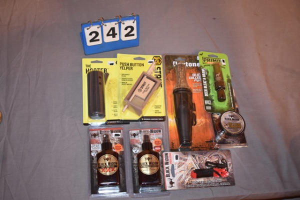 push button yelper, buck call, (3) deer scents, deer lure, the hooter, deer call