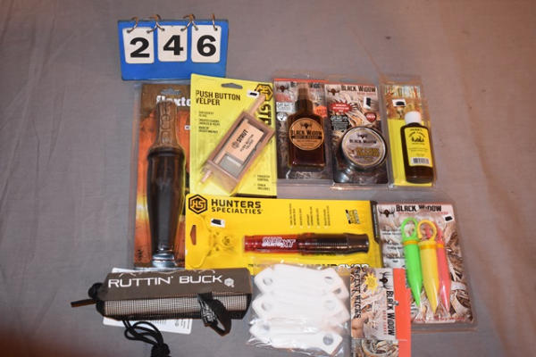 buck call, runts, push button yelper, (6) deer scent, grunt call, scent stick