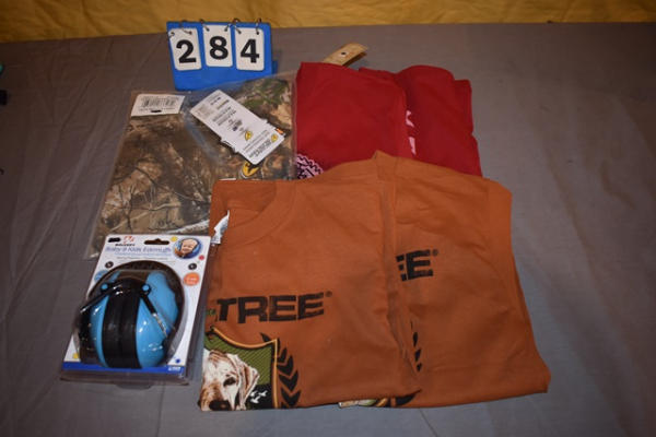 (5) various size shirts , sound compression ear muffs