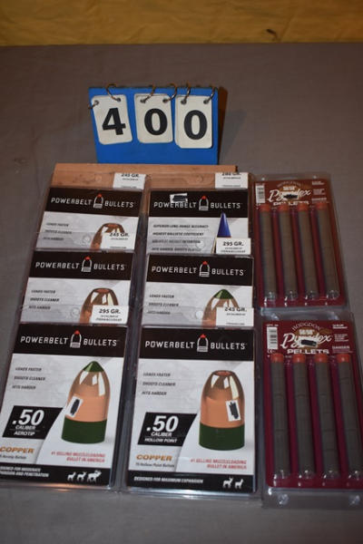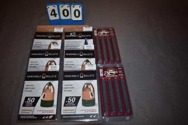 (6) powerbelt bullets, (2) pyrodex pellets