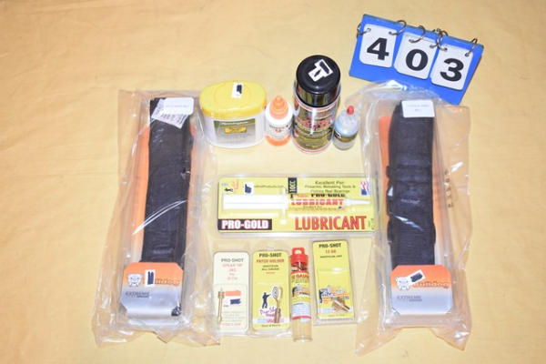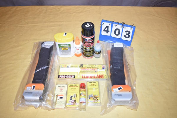 Rifle & shotgun ammo belt, rem wipes, quick fix, zero friction, spring cylinder oil, pro gold lubricant, (4) assorted cleaning tools