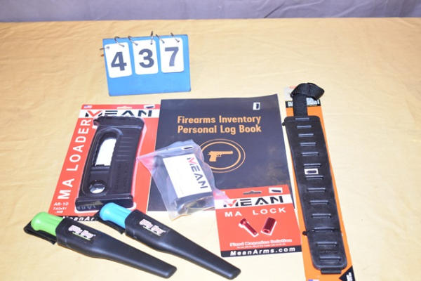 MA loader, MA pistol grip handle, MA lock, (2) knives, sling, firearms log book
