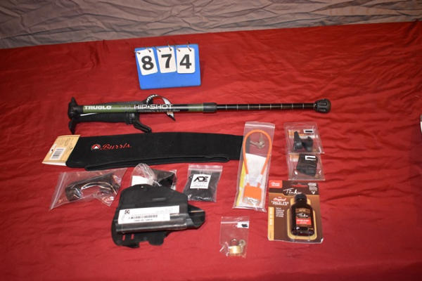 hipshot stick, scope covers, (3) assorted mounts, sw m2.0 holster, (2) assorted locks, (2) grip ext, tinks