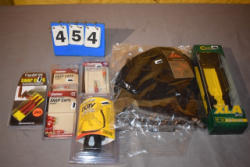 Gun case, scent sticks, lanyard, (6) various items