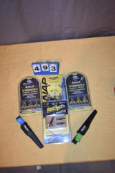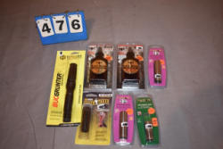 (5) assorted broadhead pkgs, broadhead sharpener