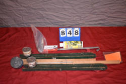 Ice fishing pole, 2 plastic reels, fish cage, 2 ice skimmers, powerbait