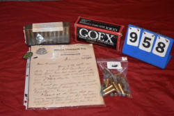 Antique winchester 40-82 wcf, antique pocket hand warmer, maynard buehler mounts rings 1'' split med code 7, antique 20 cal .38 revolver ball cartridges colt, antique .32 colt ammo 50rds