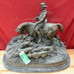 Remington Style Bronze. Artist: PJ Mene 1869. Approximately: 27 inches tall, 31 inches wide, 16 inch depth, *VERY HEAVY*