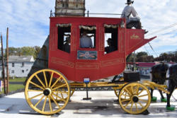 Rare One of a Kind Stage Coach with horses, cowboy and riders. Dimensions: 13 Feet Long without tongue, 26 Feet Overall Length, Wheelbase: 62.5 Inches, 10 Feet 3 Inches Tall without trick and accessories. 12 Feet 7 Inches from Cowboy Hat to Ground. Wooden Spoke Wheels: 38 Inch Front, 55 Inch Rear, Horses: 6 Feet Tall by 8 Feet Long. Horses are easily Removed.
