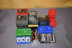 (14) assorted ammo boxes, (2) tinks, 22lr mag charger, brass collector, sling, (3) locks
