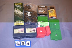 (12) assorted ammo cases, tick nipper, (2) tinks, brass collector, mag charger