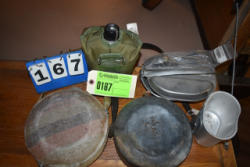 military canteens:(1) Boyco, (1) mexican, (1) US surplus, (1) Surplus Mess kit