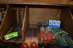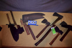 Vintage assorted axes, 6 total; Vintage sythes, 2 total