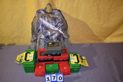 camo backpack, (13) assorted ammo boxes