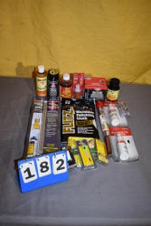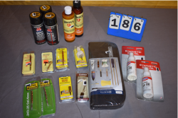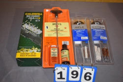 (5) gun oil , (2) black powder bore cleaner, gun cleaning kit, (8) various cleaning brushes, bore light, shotgun adapter