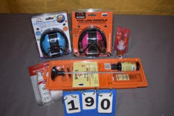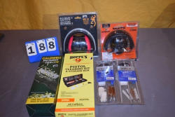(2) earmuffs, Lube, gun cleaning kit, gun oil