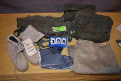 (2) Pair military khaki pants 31x31; 5 gas mask bags; 11 ammo bags
