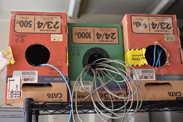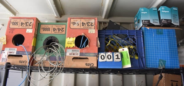 Lot of various CAT 6, CAT 5E, caution tape, halogen headlamp bulbs, etc.