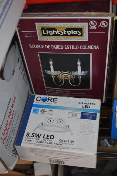 Lot includes lights, sconce light, outdoor motion sensor light, sprinkler hardware
