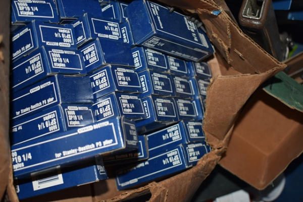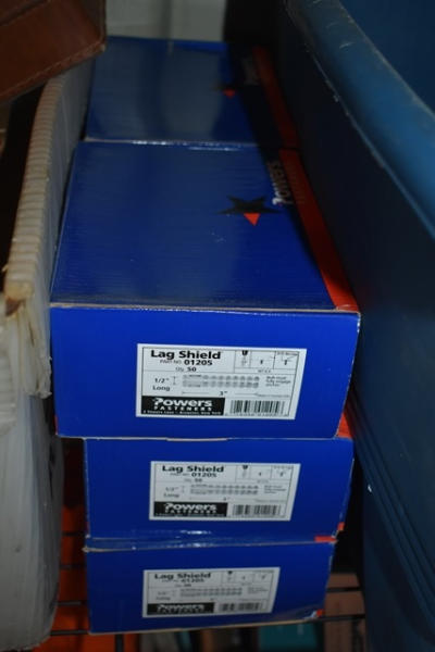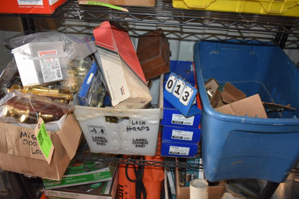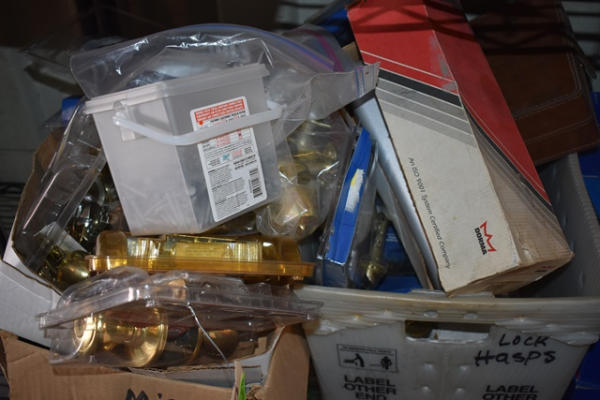 Lot of door handle hardware, lag shields, large number of SP191/4 staples