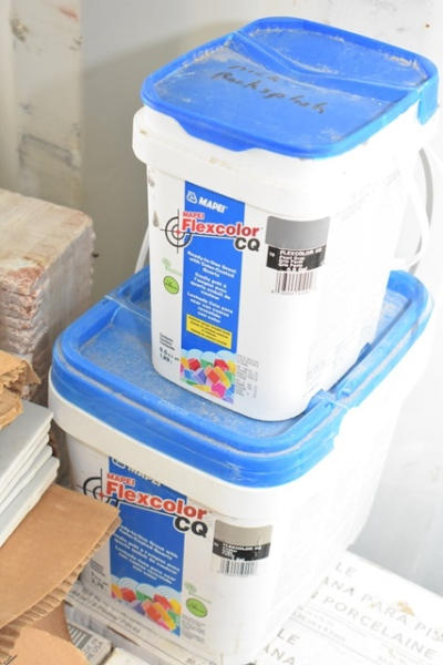 Large lot of Daltile porcelain floor tile, glazed, 12" x 24" and Flex Color CQ grout