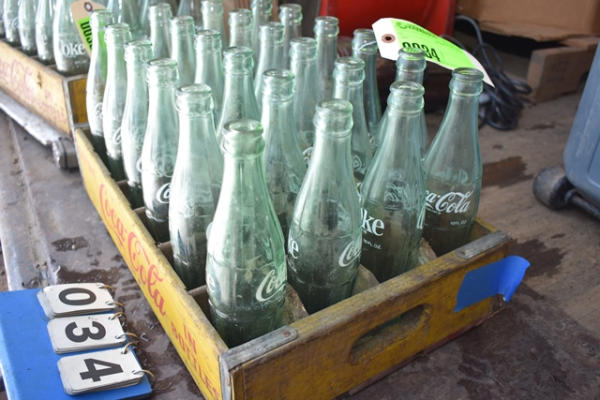 Vintage "Drink Coca Cola" in bottles, crate full of 10 fluid ounce Coca Cola glass bottles