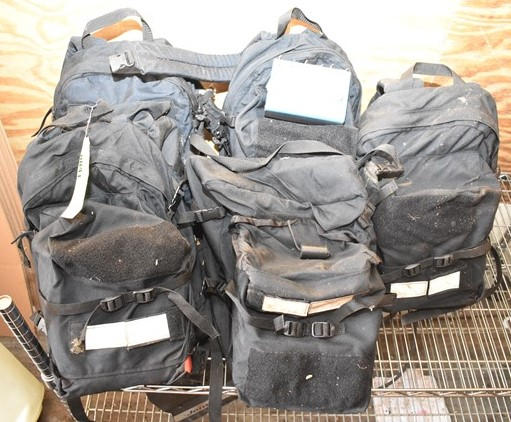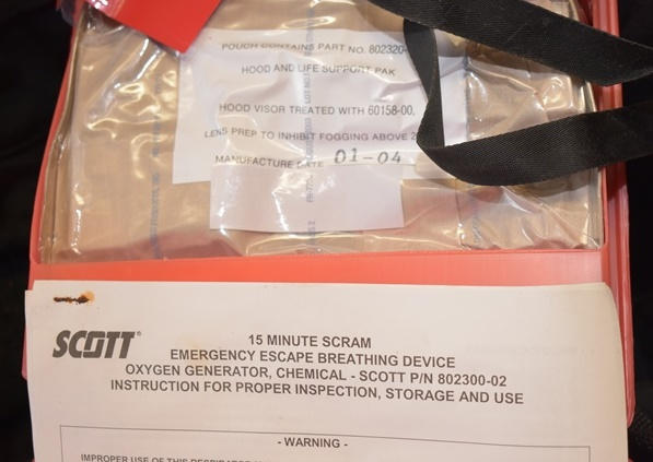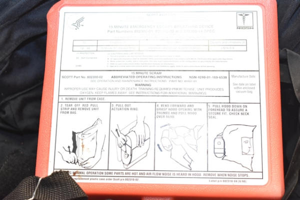 Lot of 5 backpack style Scott Aviation, 15 minute emergency escape breathing devises in backpacks