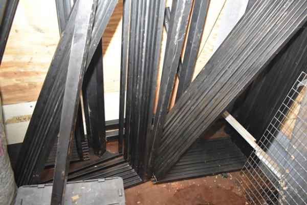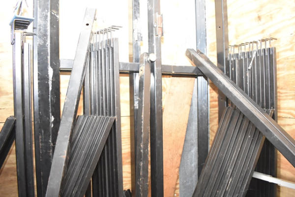 Large disassembled carpet roll rack (CUSTOMER RESPONSIBLE FOR REMOVAL)